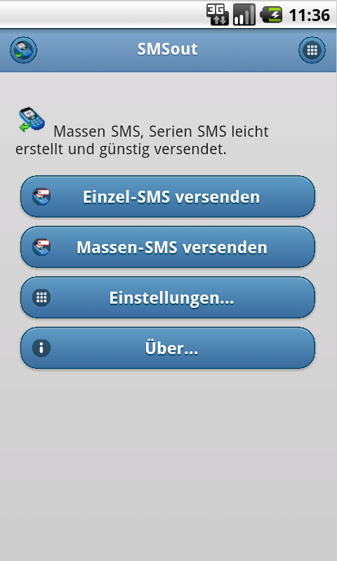 Für Smartphones mit Android System finden Sie ebenfalls eine installierbare App bei Google Play (ehemals Android Market) SMSout App. Mit der App lassen sich Einzel-SMS oder unpersonalisierte Massen-SMS direkt mit dem Smartphone versenden. Die Empfänger der SMS können direkt aus dem Telefonbuch des Smartphones gewählt werden, eine Personalisierung der SMS ist nicht möglich.