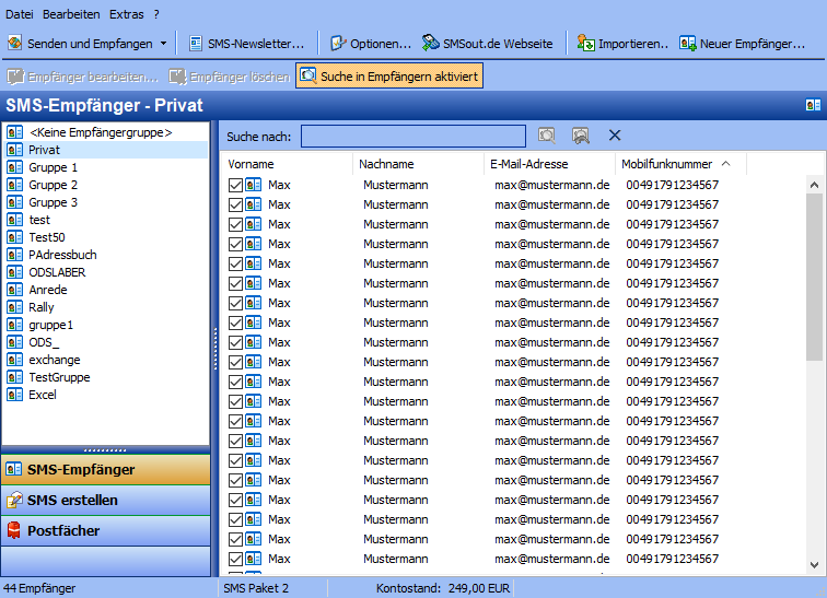 SMSout Versenden von Einzel-SMS, Serien-SMS und Massen-SMS mit der SMS Versandsoftware